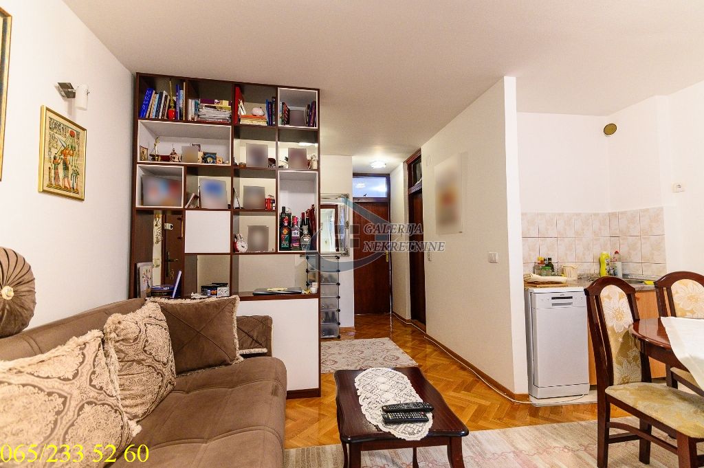 Od prostorija: hodnik, dnevni boravak sa trpezarijom, odvojena kuhinja,dve spavaće sobe, kupatilo.