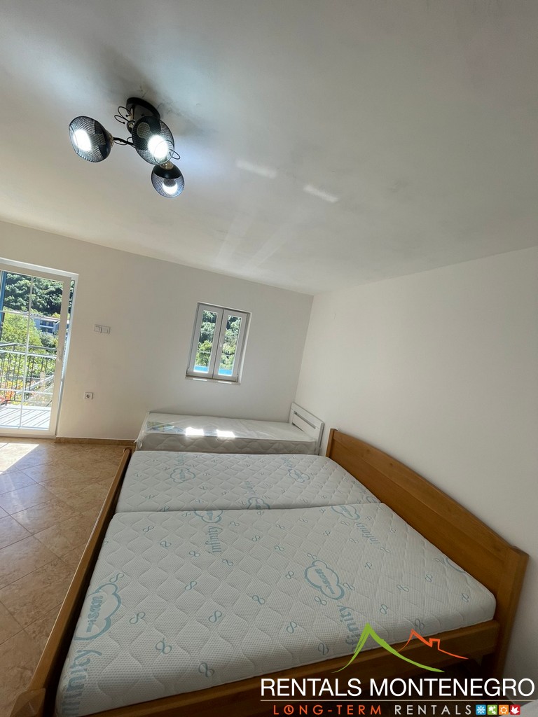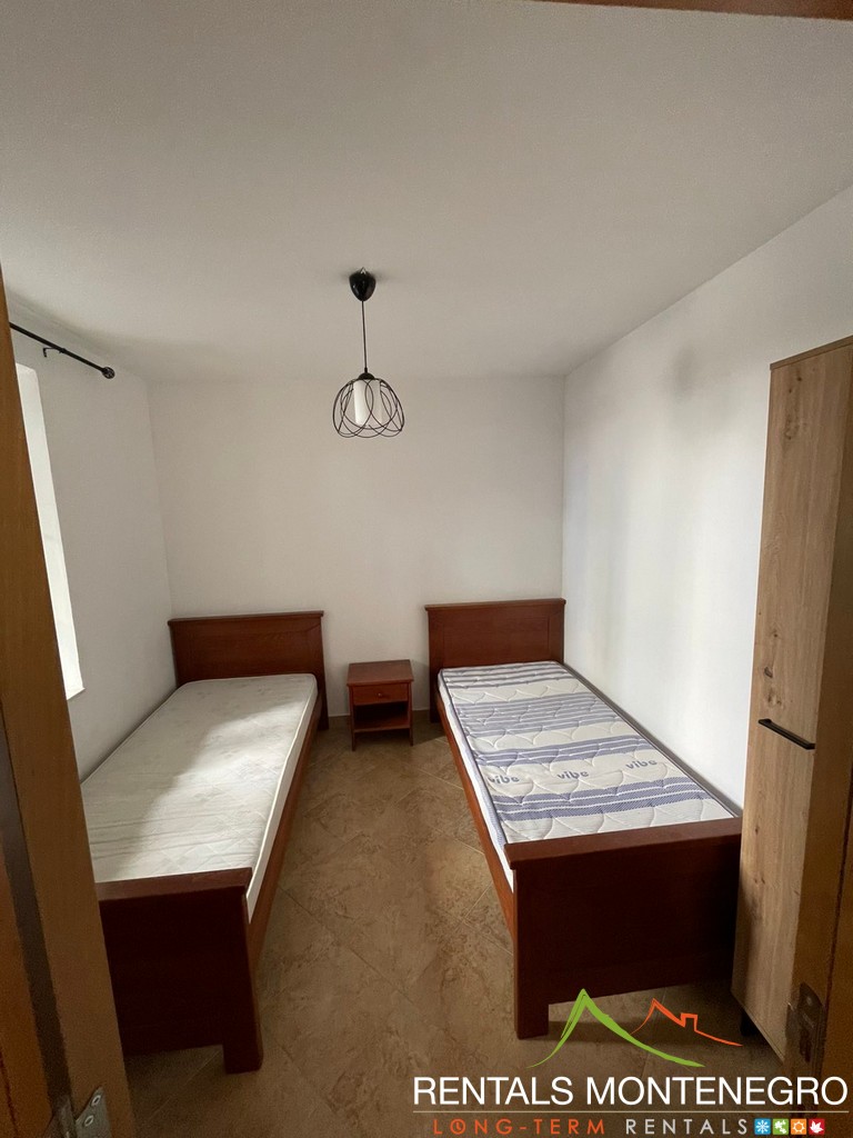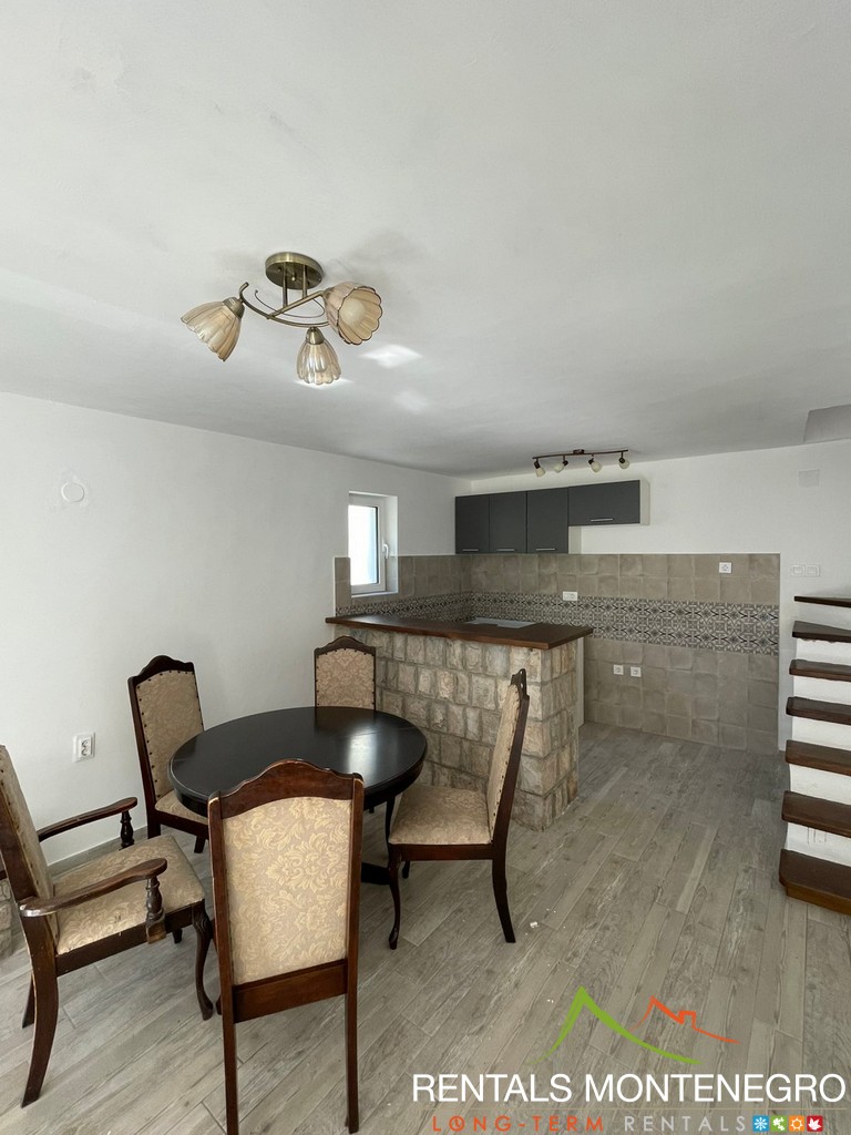 Dvosoban stan u privatnoj kući na dva nivoa, na udaljenosti od 200m od mora u Morinju. Udoban je i djelimično opremljen (mogućnost potpunog opremanja), sa fantastičnom lokacijom.