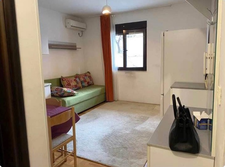 Stan se sastoji od hodnika, dnevnog boravka sa kuhinjom i trpezarijom, te kupatila sa tušem. Balkona nema.