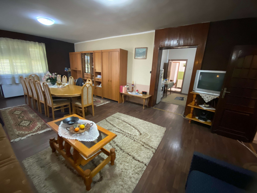 Prizemna kuća od oko 110m², sastoji se iz ulaznog hodnika, 3 spavaće sobe, prostranog dnevnog boravka, tpezarije, kuhinje, prostorije gde se nalazi kotao i ostave. Kuća ima dva zasebna ulaza. Ispred same kuće nalazi se veliki trem a uz kuću magaza i čardak.