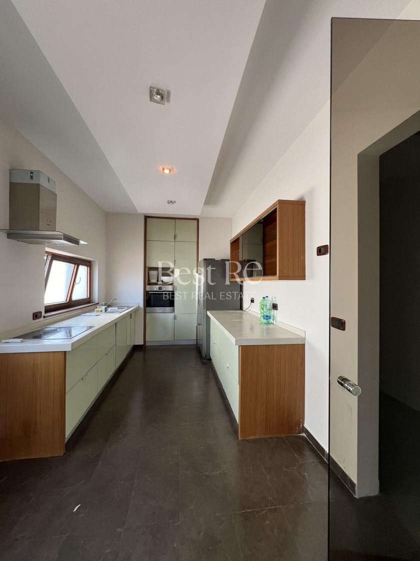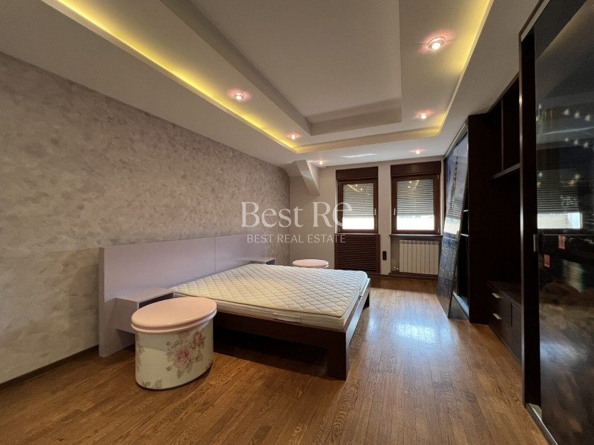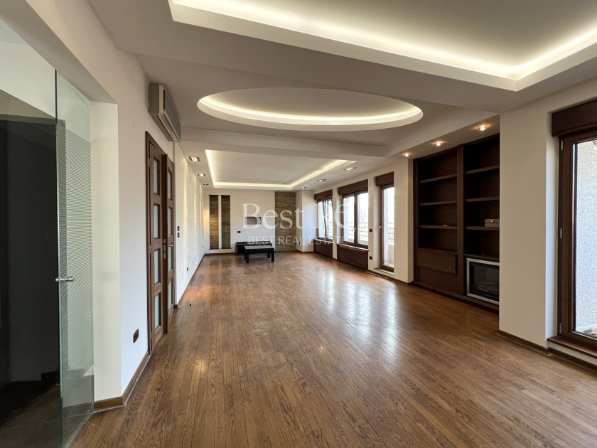 Opis: Penthouse sa prostranim dnevnim boravkom od 60m2 koji ima izlaz na terasu, zasebna kuhinja (kompletno opremljena) sa pritidnom ventialcijom, toalet, 3 spavaće sobe sa ugradnim plakarima, 2 kupatila, soba garderober, terasa sa koje se pruža panoramski pogled.