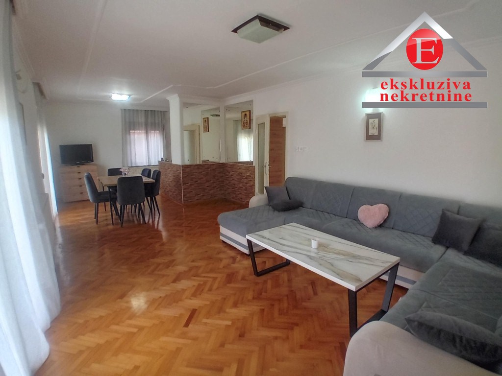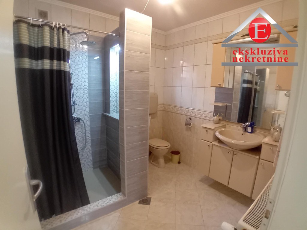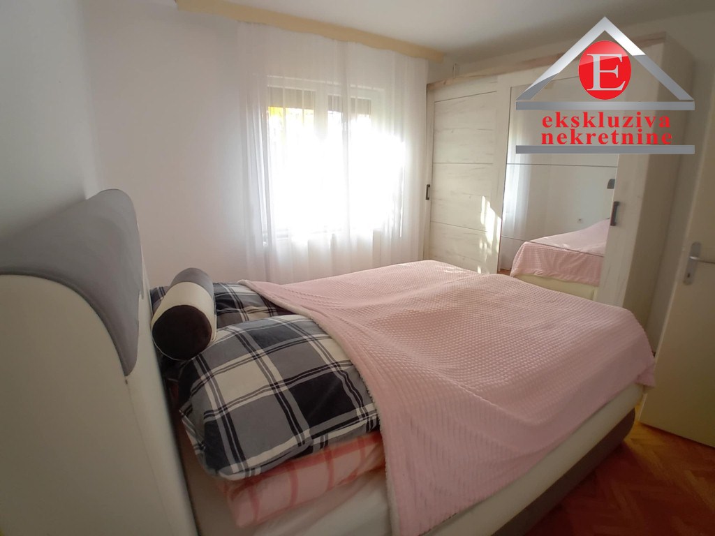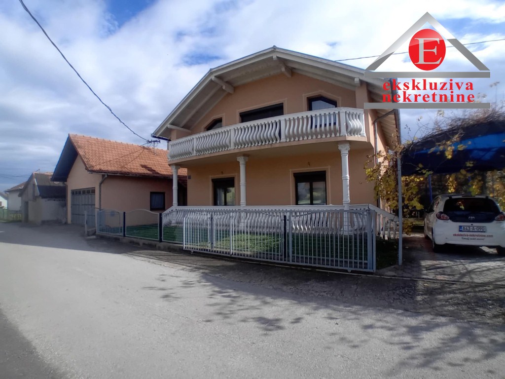 Opis: Kuća na sprat u novoj gradnji površine 92 m2 u osnovi, pomoćna zgrada površine 90 m2 na placu 725 m2. Prizemlje kuće se sastoji od prostranog dnevnog boravka koji ima izlaz na terasu, trpezarije, kuhine, spavaće sobe,kupatila, hodnika, ostave i stubišta za sprat. sprat kuće nije završen. Po rasporedu je isti raspored prostorija kao i prizemlje. Kuća je opremljena Drvenom stolarijom unutrašnjom i vanjskom, Alu roletnama, protivprovalnim ulaznim vratima, Centralnim etažnim grijanjem na struju i čvrsto gorivo, kvalitetnim hrastovim parketima, betonskim Grčkim stubovima na terasama.