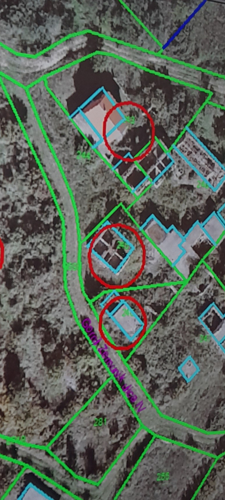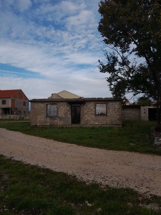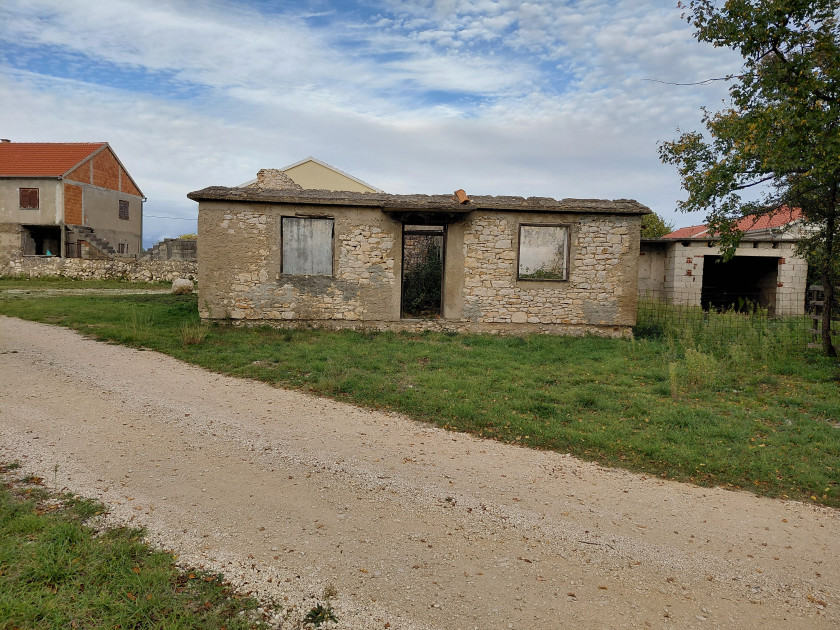 Opis: Kuca sa okucnicom,garazom i gusternom za vodu od 36m3 (rezervoar za vodu betonski).Kuca je bez krova (ostecenje je nastalo tokom rata).Blizu kuce je prikljucak za struju i vodu. Kuca je prizemna , dimenzije 10*10 metara ,kamene gradnje.Ima put do kuce asfaltni. Vlasnik 1/1