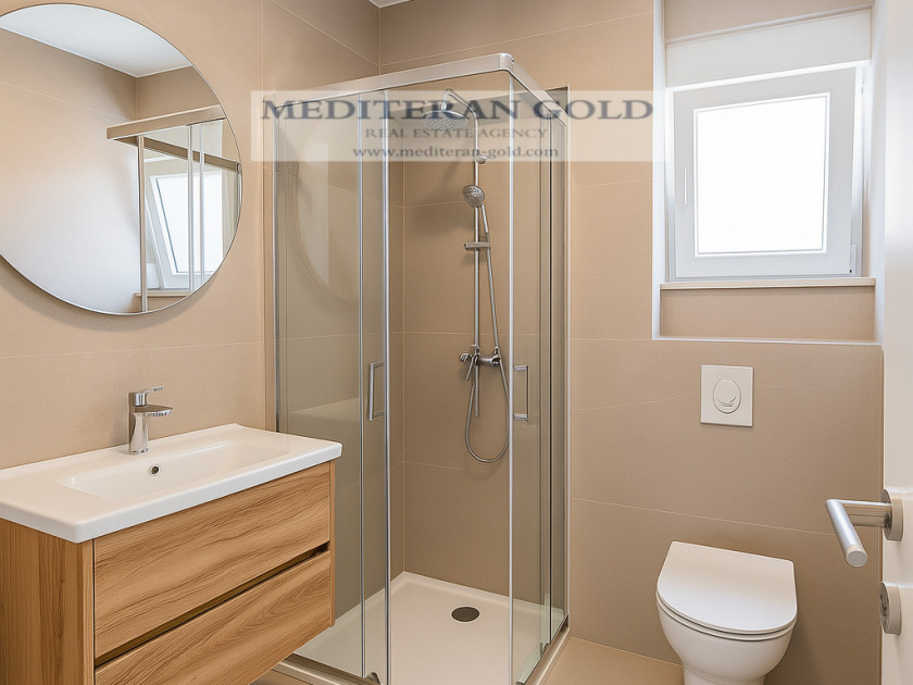 Opis: Kaštel Štafilić, novogradnja, trosoban penthouse od 128,26 m2, položen u novoj stambenoj zgradi, visoka kvaliteta gradnje i opreme, odlična lokacija, 150m od mora i blizina svih sadržaja. U cijenu stana je uključeno i vanjsko parkirno mjesto, useljivo. Zgrada je u završnoj fazi izgradnje, cijena je 3.500€/m2 (448.910€) orijentacije: jug-zapad. Prekrasan pogled na more. Agencija naplaćuje proviziju.