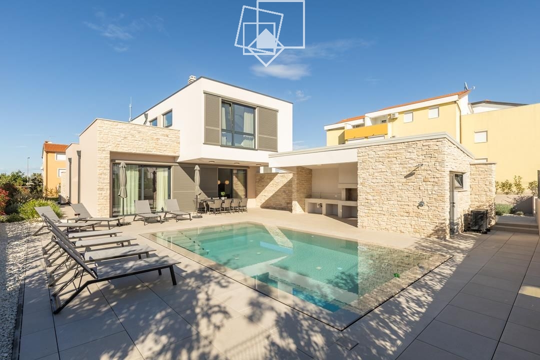 Na prodaju je moderna luksuzna kuća smještena u mirnom naselju Finida, svega 1 km od centra Umaga i 10 minuta od mora. Ova elegantna nekretnina predstavlja savršen spoj udobnosti, sofisticiranog dizajna i mediteranskog načina života.