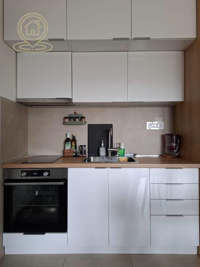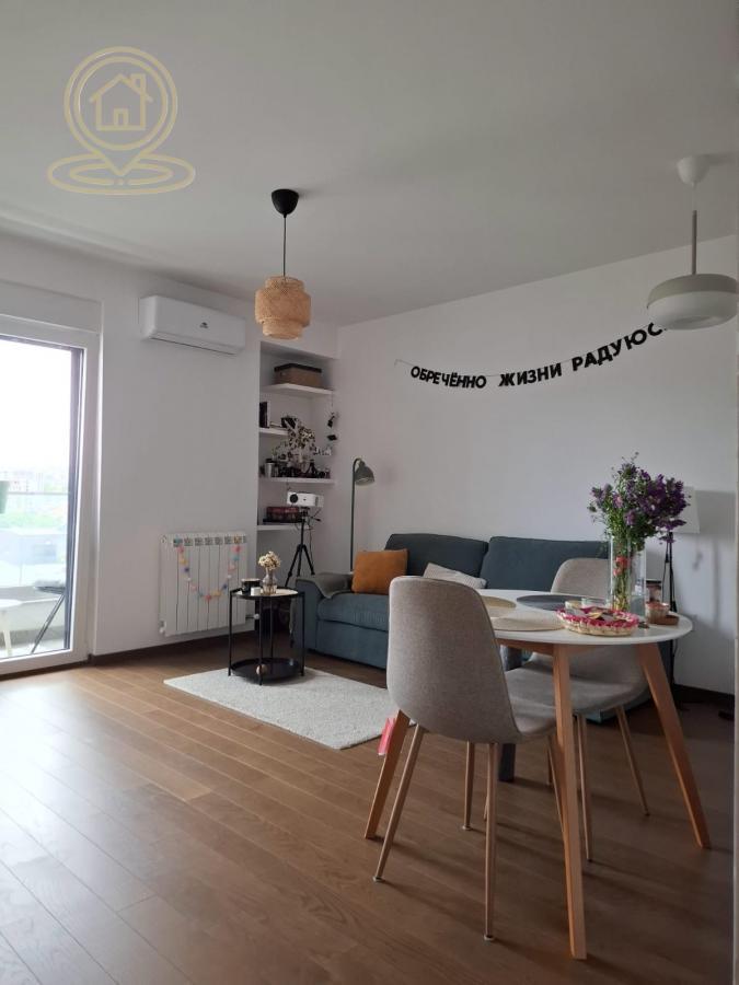 Sastoji se od svetlog dnevnog boravka sa kuhinjom i trpezarijom, spavaće sobe, kupatila i terase. Sve u stanu je novo i pažljivo odabrano, što pruža maksimalan komfor i prijatan ambijent za život.