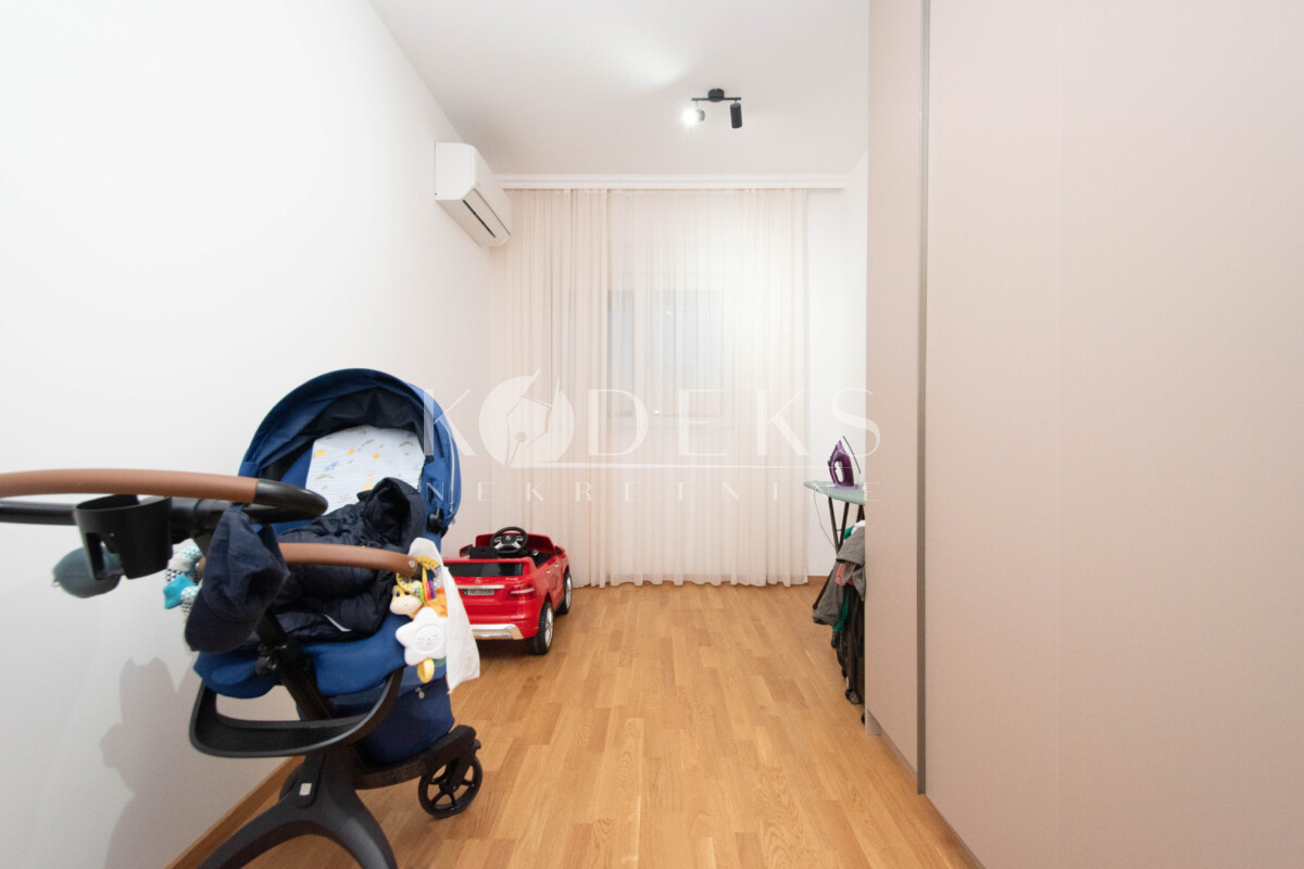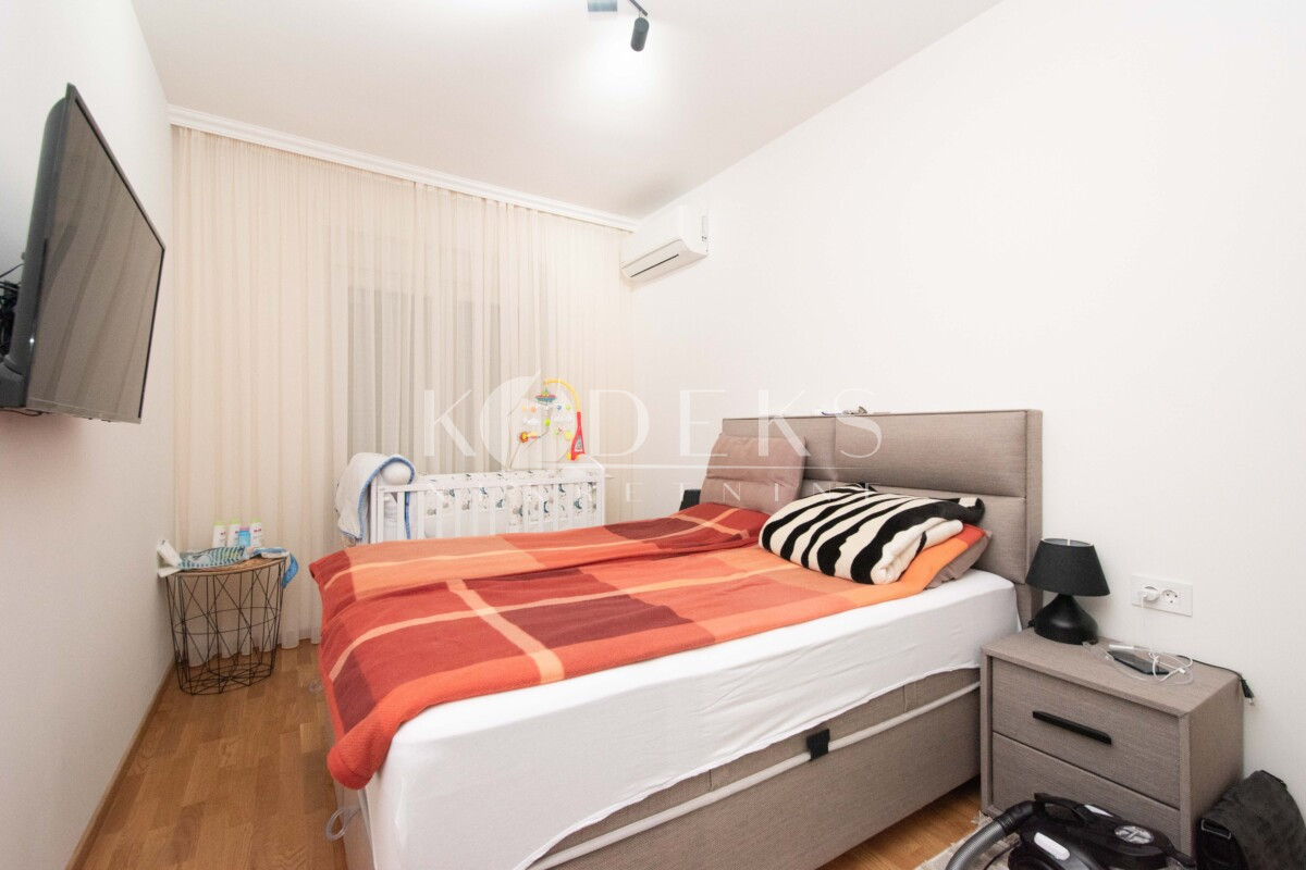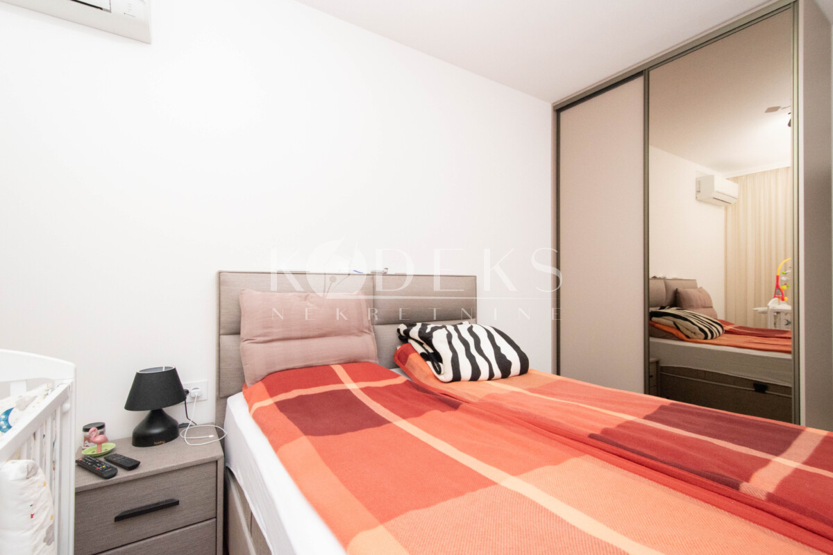 Opis: Prodaje se kompletno namješten dvosoban stan smješten na trećem spratu zgrade Bemax na Starom aerodromu.