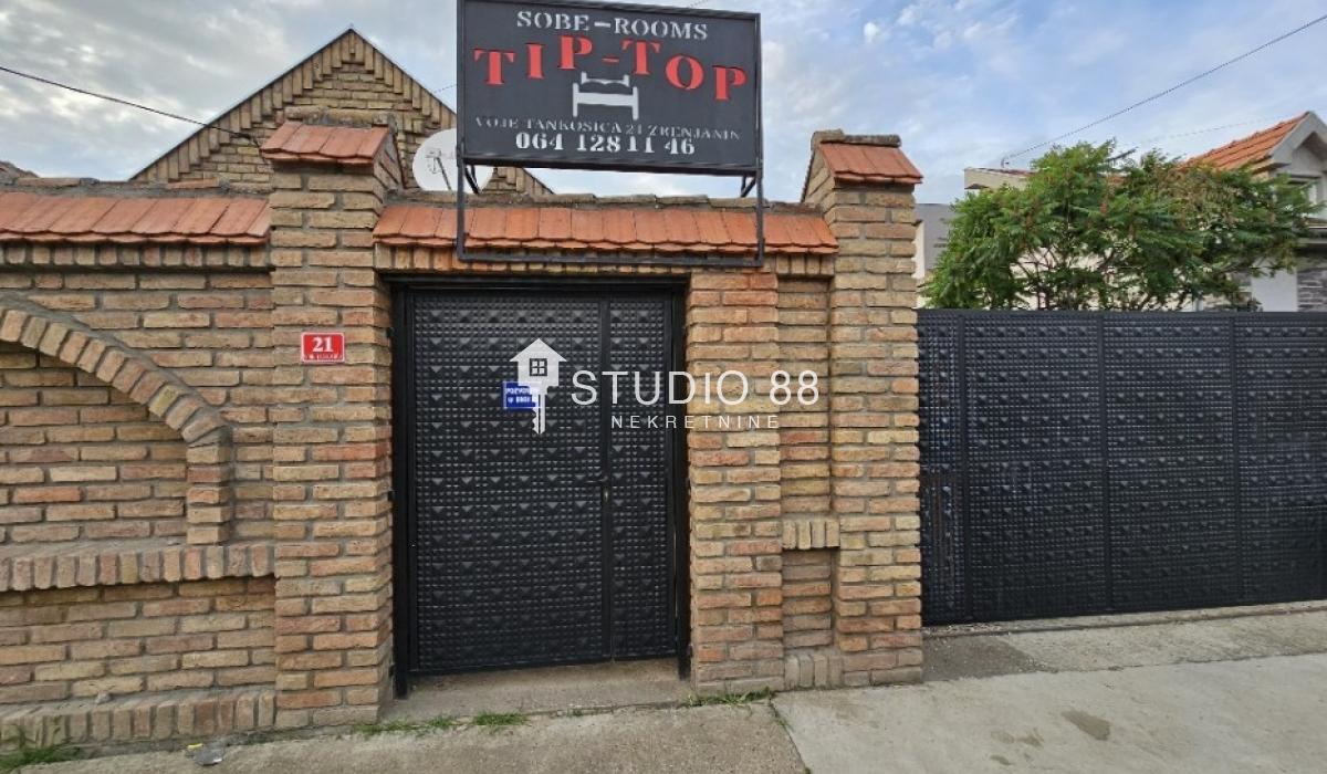 Opis: Sobe TIP TOP Zrenjanin površine 180m2 na placu od 899m2 se nalaze u mirnom delu grada, van gradske gužve. Sastoji se od šest potpuno opremljenih, lepo uređenih unikatnih soba, svaka sa svojim kupatilom, inverter klima uređajem, kablovskom televizijom i internetom. U sastavu smeštaja se nalazi kuhinja s prostranom trpezarijom. Ispred objekta se nalazi parking prostor.