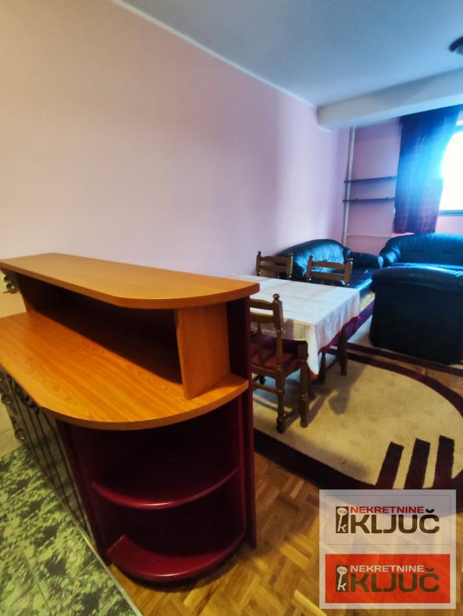 Opis: Na Bul.K.Petra izdajemo dvosoban namešten stan.Zgrada je uvučena u odnosu na bulevar-mirna ulica.Dnevni boravak sa kuhinjom i trpezarijom ,terasa,spavaća soba,kupatilo.