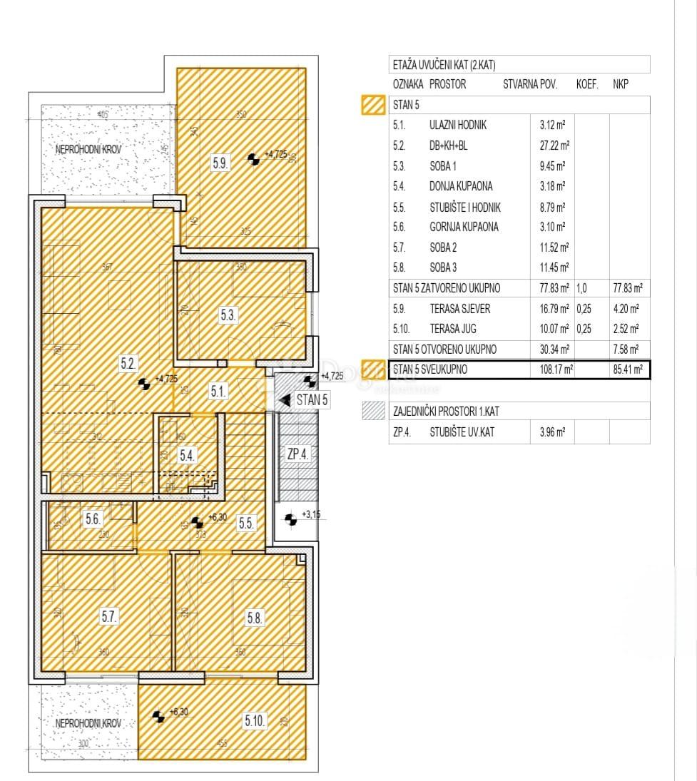 U mirnoj slijepoj ulici na Lašćini prodaje se izuzetno kvalitetan dvoetažni penthouse u novogradnji, površine 119,23 m², s garažnim i vanjskim parkirnim mjestom u cijeni. Stan se nalazi na 2. katu moderne zgrade građene prema najvišim standardima energetske učinkovitosti (A+ certifikat).