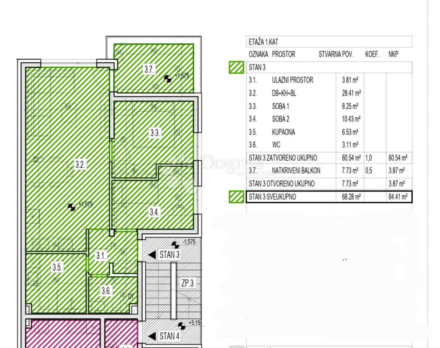 Prodaje se vrhunski stan na 1. katu novogradnje sa pet stanova, površine 68,27 m² + GPM (garažno parkirno mjesto) + VPM ( vanjsko parkirno mjesto ), smješten u mirnoj slijepoj ulici na jednoj od najpoželjnijih lokacija na Lašćini.