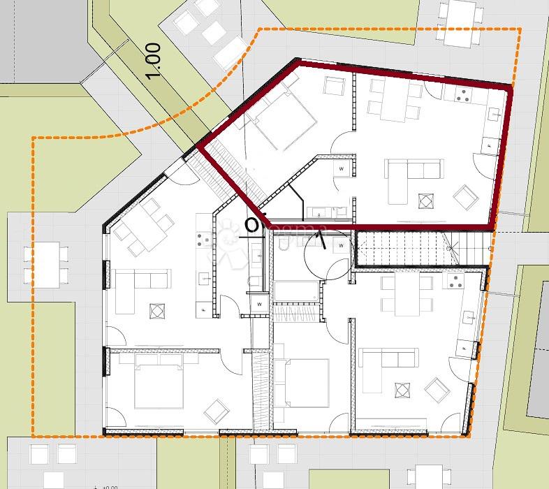 Opis: Moderna novogradnja u Poreču – stan s prostranim vrtom (56 m² + 151 m² vrt)
