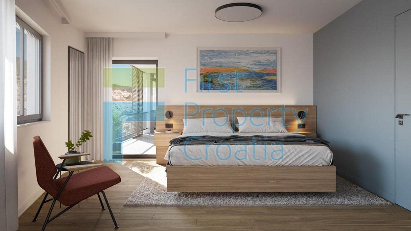 Prvi kat:AP 1A – Ovaj stan na prvom katu ima cca 121m2 unutrašnjeg prostora i natkrivenu terasu od cca 31m2. Raspored ove stambene jedinice se sastoji od 3 spavaće sobe s vlastitim kupaonicama, hodnika, wc-a, spremišta i otvorenog koncepta dnevnog boravka, kuhinje i blagovaonice. Iz svijetlog i prozračnog dnevnog boravka kao i jedne od spavaćih soba izlazi se na prostranu terasu. Cijena je: 492.000 €AP 1B – Ovaj apartman ima cca 118m2 unutarnjeg prostora, natkrivenu terasa od cca 22m2 i još jednu (bočnu) terasu od cca 8m2....