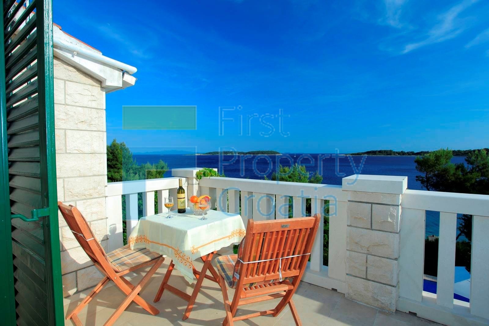 Kamena vila ima cca. 150m2 lijepo raspoređenog prostora na 2 etaže, odnosno između prizemlja i kata sa posebnim ulazima. Nalazi se na parceli od cca 380m2 s direktnim izlazom na more što je izvrsna i rijetka prednost. U prizemlju se nalaze 2 spavaće sobe, kupaonica, predsoblje, vešeraj i ugodna blagovaonica s kamenim kaminom i kuhinja. Prije ulaza na ovoj razini nalazi se lijepa natkrivena terasa odlična za pauze uz kavu i opuštanje u ugodnoj hladovini. Prvi kat zauzimaju 2 spavaće sobe, kupaonica, predsoblje, hodnik, dnevni boravak i balkon sa spektakularnim pogledom na more koji se naravno ne može zakloniti. Na prvom katu je glavni ulaz u vilu, ispred kojeg se nalazi privatni parking koji može primiti 2 automobila. Lijepo uređen vanjski dio uključuje bujnu mediteransku vegetaciju te terasu za sunčanje s velikim bazenom i pergolom....