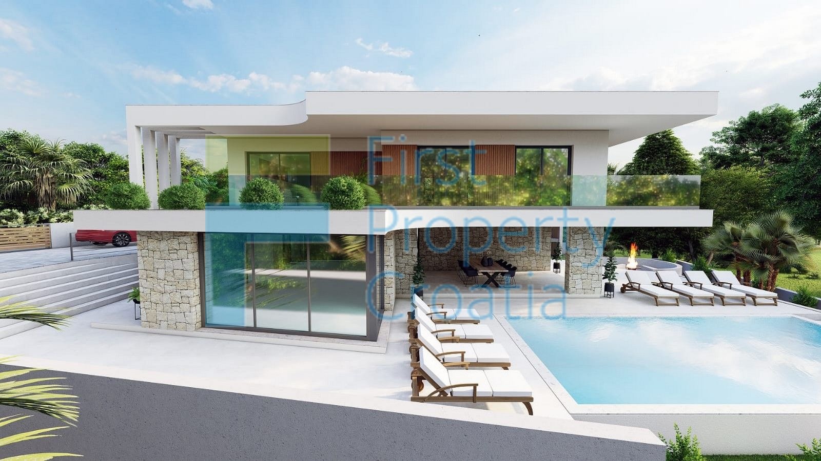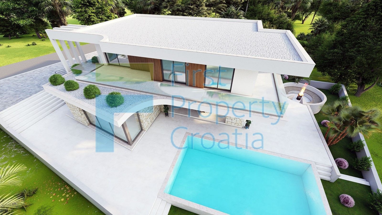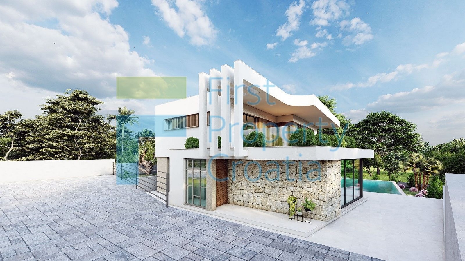 Vila ima 304m2 ukupne površine raspoređene na prizemlje i prvi kat. Na ograđenoj parceli od 630m2 nalazi se privatni parking za 2 automobila, kao i površine namijenjene bujnom mediteranskom zelenilu.