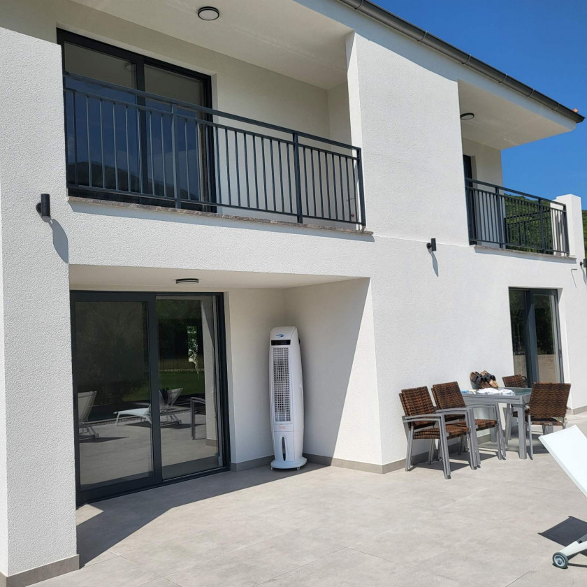 Kuća posjeduje podno grijanje, centralnu klimu i uređen i ograđen plac površine 2140m2.