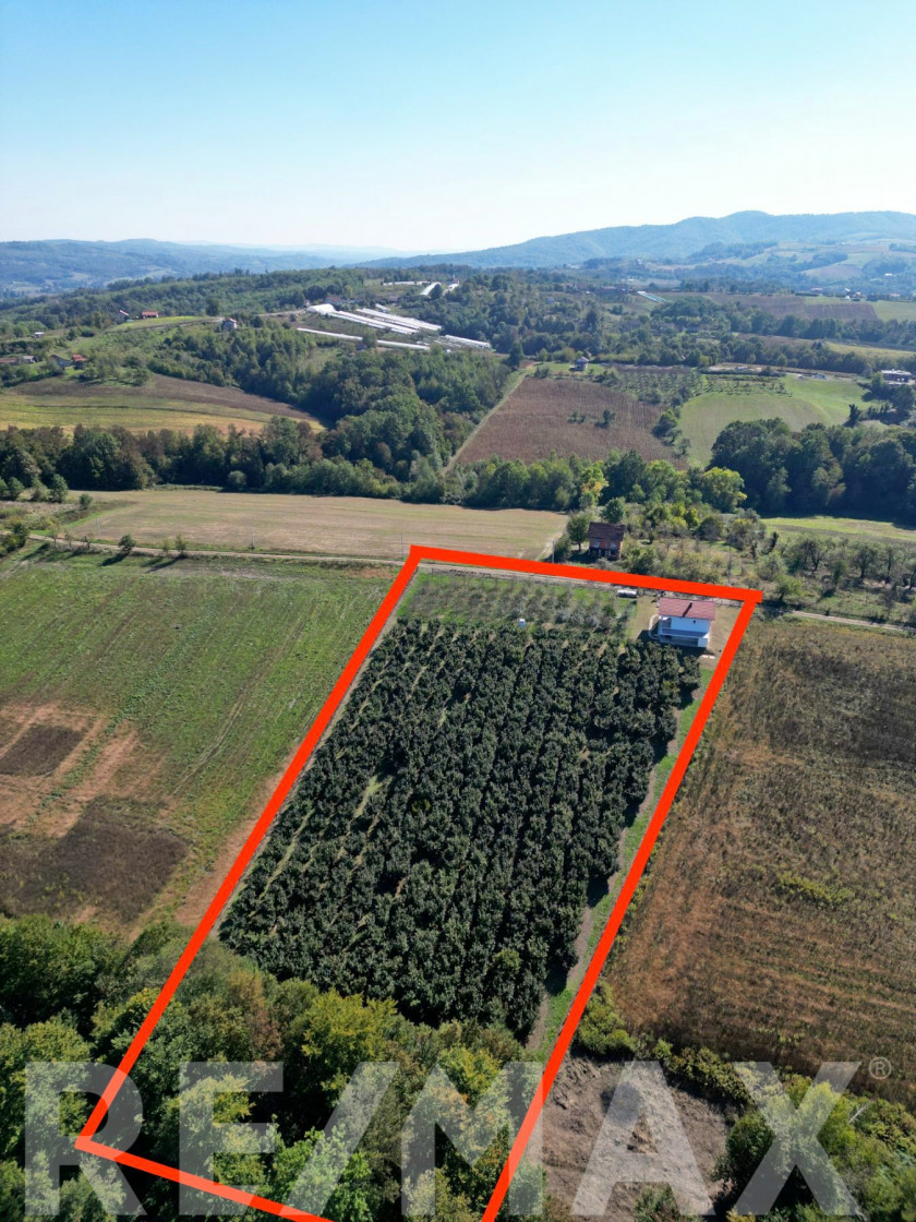 Ovdje ne kupujete samo kuću – kupujete stabilan izvor prihoda. Na 9.349 kvadratnih metara kompletno ograđenog zemljišta nalazi se 400 stabala lješnjaka starih osam godina koja su u punoj rodnosti, te 70 stabala šljiva starih šest godina. Moderan sistem kap po kap za navodnjavanje osigurava optimalan rast i kvalitetan prinos. Po dogovoru predmet prodaje mogu biti uključene i mašine za obradu plodova: motokultivator, usisivač, atomizer– oprema za profesionalnu proizvodnju.