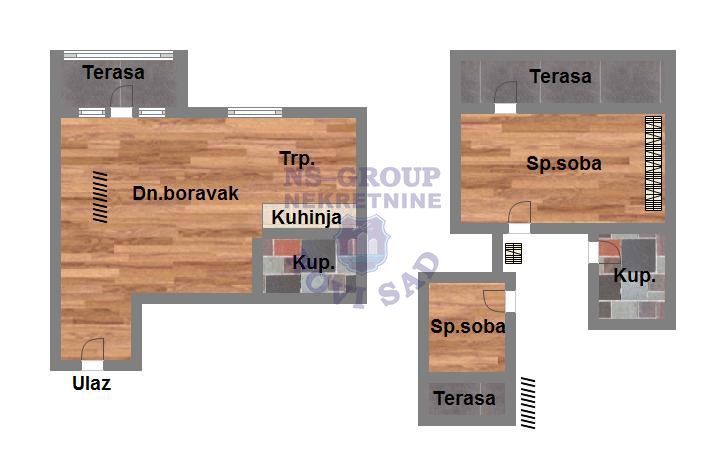 Opis: Jedinstveni trosoban duplex u Starom gradu, u centru Novog Sada. Stan se sastoji od dve etaže, na donjoj se nalazi lep dnevni boravak sa kuhinjom, toaletom i zastakljenom terasom koja gleda na ulicu. Na drugom nivou su dve spavaće sobe, obe imaju izlaz na zastakljene terasa, od kojih je jedna dvorišno orijentisana i kupatilo. U sklopu ove zgrade je i malo dvorište koje isključivo stanari koriste. Postoji mogućnost proširenja stana na tavanski prostor cca 30m2. Za svaku informaciju, kontaktirajte našu agenciju.