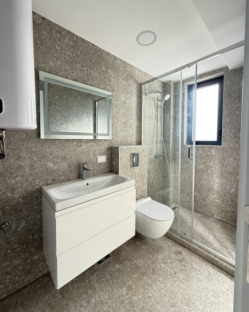 👉 Raspored: 3 spavaće sobe, 2 kupatila, prostran dnevni boravak, kuhinja i terasa