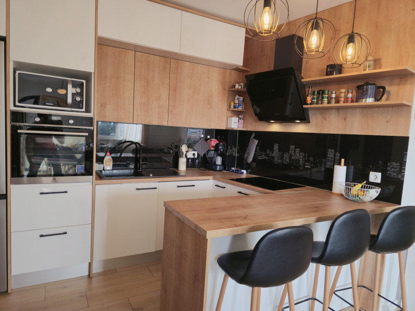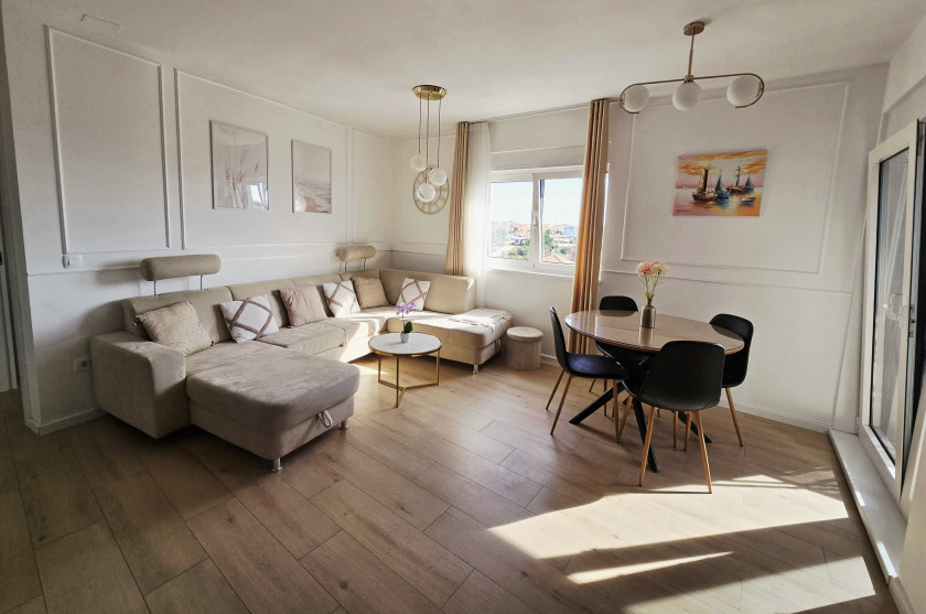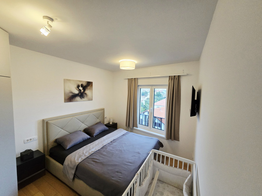 Opis: Prodajem namješten stan u novogradnji sa svim namještajem i opremom, s pogledom na more u mirnom kvartu, orijentacije jugoistok.