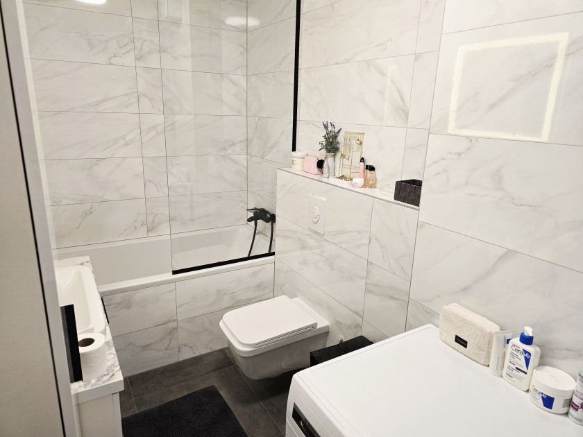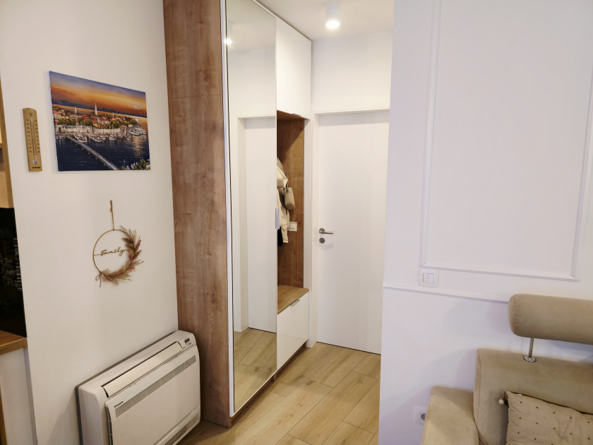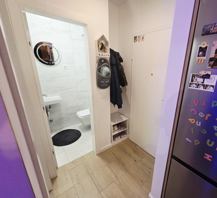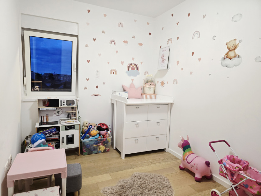 Idealno za život i za investiciju – odlična lokacija za iznajmljivanje. Sastoji se od prostranog dnevnog boravka, blagovaonice i kuhinje, 2 sobe, kupaonice s podnim grijanjem, wc-a i lođe koja se zatvara staklenom stijenom .