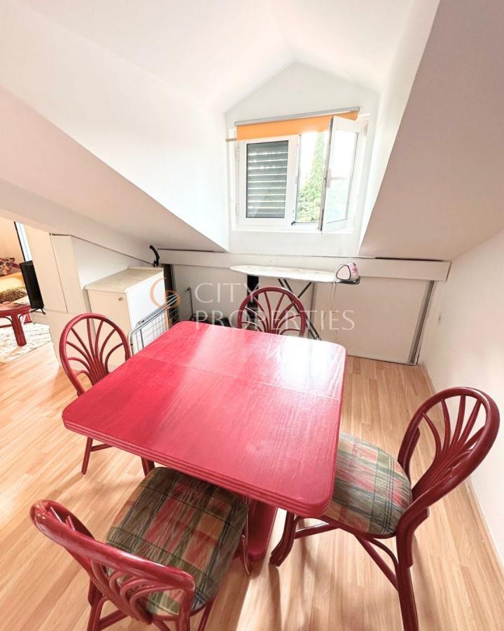 Stan se nalazi na potkrovlju stambene zgrade starije gradnje. Prodaje se namješten. Zgrada nema lift.