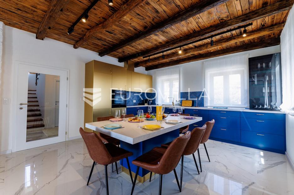 Opis: U samom srcu istre na mirnoj lokaciji smještena je ova moderna kamena kuća koja se prostire na dvije etaže ukupne stambene površine od 156 m2, nalazi se na okućnici ukupne veličine od 535 m2.Prizemlje se sastoji od ulaznog hodnika, radne sobe, wc-a, prostranog dnevnog boravka s kuhinjom i blagovaonom po open space konceptu gdje imate direktan izlaz na vanjsku terasu i vrt na kojem se nalazi već spomenuti grijani bazen veličine od 32 m2, roštilj i sunčalište.Na katu se nalaze tri spavaće sobe s dva kupatila te velika terasa s koje imate direktan pogled na prirodu koja Vam pruža ova lokacija nekretnine.Nekretnina sadrži ukupno dvije klimatske jedinice, jedna po svakoj etaži te kamin u dnevnom boravku.Zbog blizine svih sadržaja i većih turističkih mjesta, ova nekretnina i lokacija idealna je turistički najam ili za obiteljski život.Kuća je u uspješnom turističkom najmu te kao takva je siguran povrat investicije dok zbog privatnosti koju pruža mogla bi nekome biti dom iz snova ili oaza za odmor iz snova.Za više informacija slobodno nas kontaktirajte.Za ovu nekretninu kontaktirajte agenta na broj telefona +385 95 377 5581....