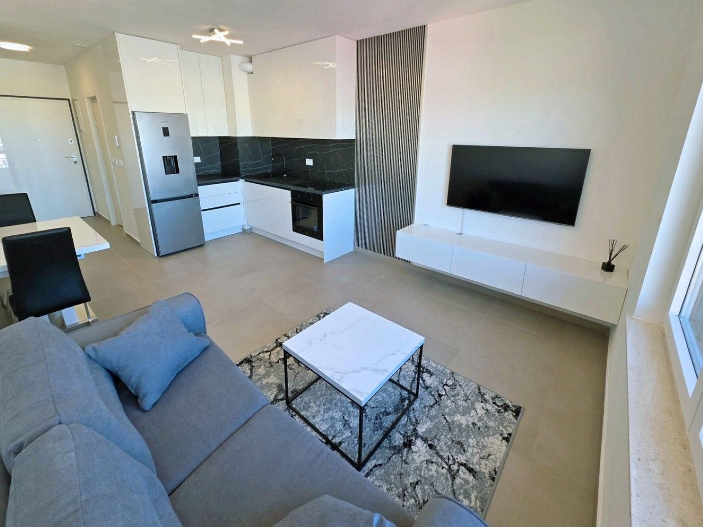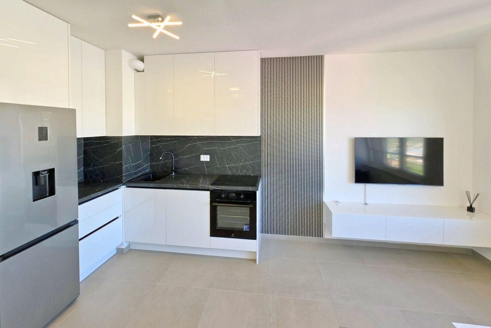 Klimatiziran je kompletno je novonamješten: perilica posuđa, perilica/sušilica rublja, električni podizači za rolete…..