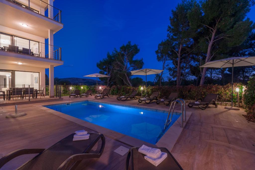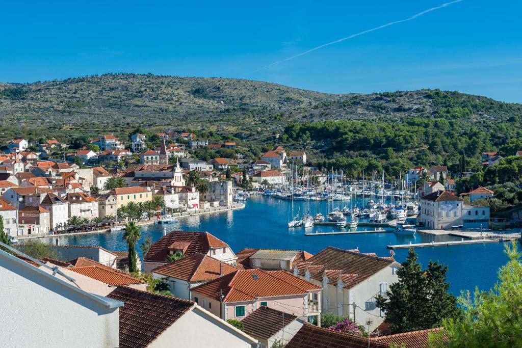 Opis (Engleski): For sale: a stunning, modernly designed house in the charming coastal town of Milna, located on the western side of the island of Brač, just 300 meters from the sea and the catamaran port.The island of Brač is well connected to the mainland all year round by frequent ferry and catamaran lines. Milna offers direct connections to Split, Hvar, and Korčula, making it an easily accessible and highly desirable destination for both living and tourism.The house is part of a small residential complex and has a total living area of 155 m², spread over three floors.The ground floor includes an entrance hall, one bedroom, a bathroom, and a wardrobe.The first floor offers two bedrooms, including a spacious master bedroom with an en-suite bathroom, and an additional separate bathroom....