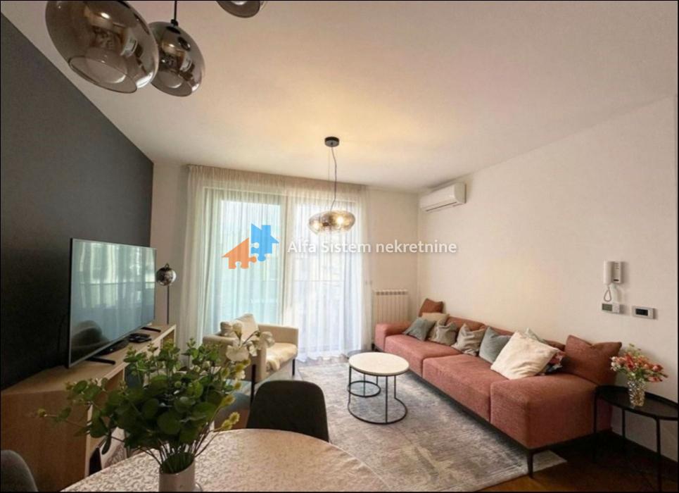 Opis: Izdaje se potpuno namešten, ekstra luksuzan stan od 50m² u novoj, ekskluzivnoj zgradi na Banovom brdu. Stan se sastoji od dnevnog boravka sa trpezarijom i kuhinjom, spavaće sobe, kupatila, hodnika i terase.