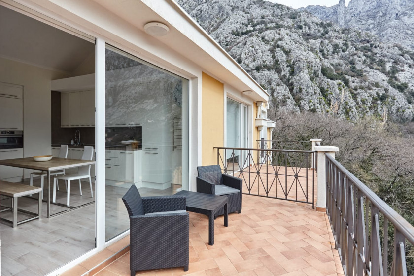 Opis: Na prodaju: Dobrota #7478. Ovaj prostrani i svetao jednosoban stan meri 63 m² i ima terasu od 14 m² sa zadivljujućim pogledom na planine i Bokokotorski zaliv. Nalazi se na 3. (poslednjem) spratu udobne male stambene zgrade u slikovitom selu Orahovac, jednom od najlepših kutaka Bokokotorskog zaliva. Stan je potpuno opremljen modernim, stilskim nameštajem i spreman je za useljenje ili izdavanje. Zgrada je deo stambenog kompleksa sa bazenom, savršenim za osveženje u vrelim letnjim danima. Udobna niska zgrada obezbeđuje mir i privatnost. More i plaža su udaljeni oko 600 metara duž živopisnog puta. Orahovačko šetalište je divno mesto za šetnje pored mora, sa nekoliko živopisnih plaža, kao i udobnim restoranima i kafićima gde možete uživati u lokalnoj kuhinji i atmosferi primorskog života.