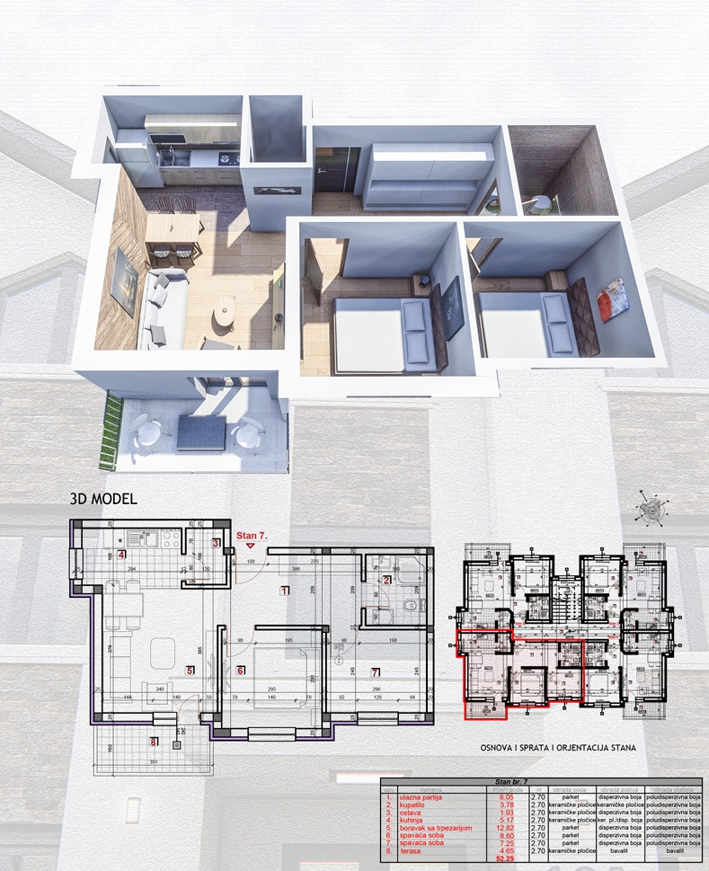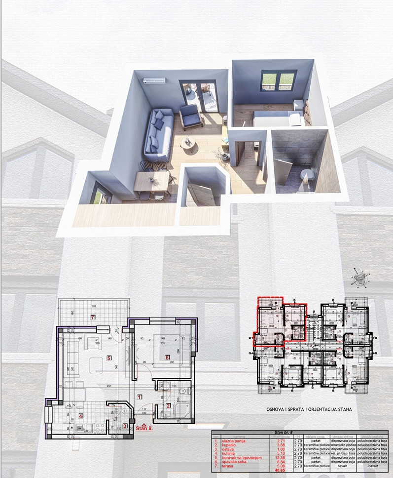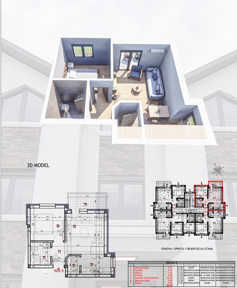 Površine dostupnih stanova su od 37m2 do 41m2.