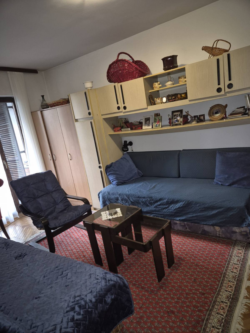 Opis: Izdaje se velika garsonjera od 40 m kvadratni na trećem spratu bez lifta u zgradi kod Palade.