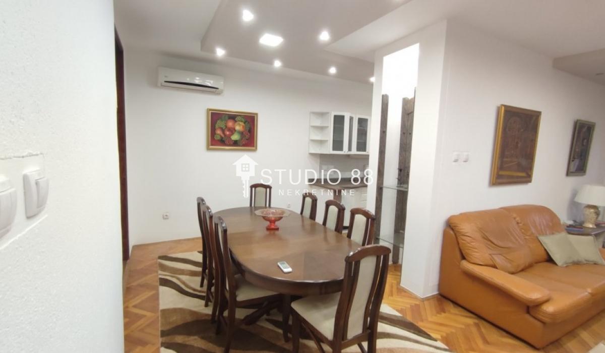 Opis: Četvorosoban namešten stan u širem centru grada na prvom spratu, površine 151 m2 sa parking mestom. Stan se sastoji od velikog open space prostora sa skrivenom kuhinjom, trpezarijom i dnevnim boravkom sa terasom, tri spavaće sobe od kojih dve imaju izlaz na terasu, kupatila, toaleta i vešernice. Svi režijski troškovi su uračunati u cenu zakupa, kao i čišćenje stana jednom mesečno. Stan je slobodan od 15.11.2025.