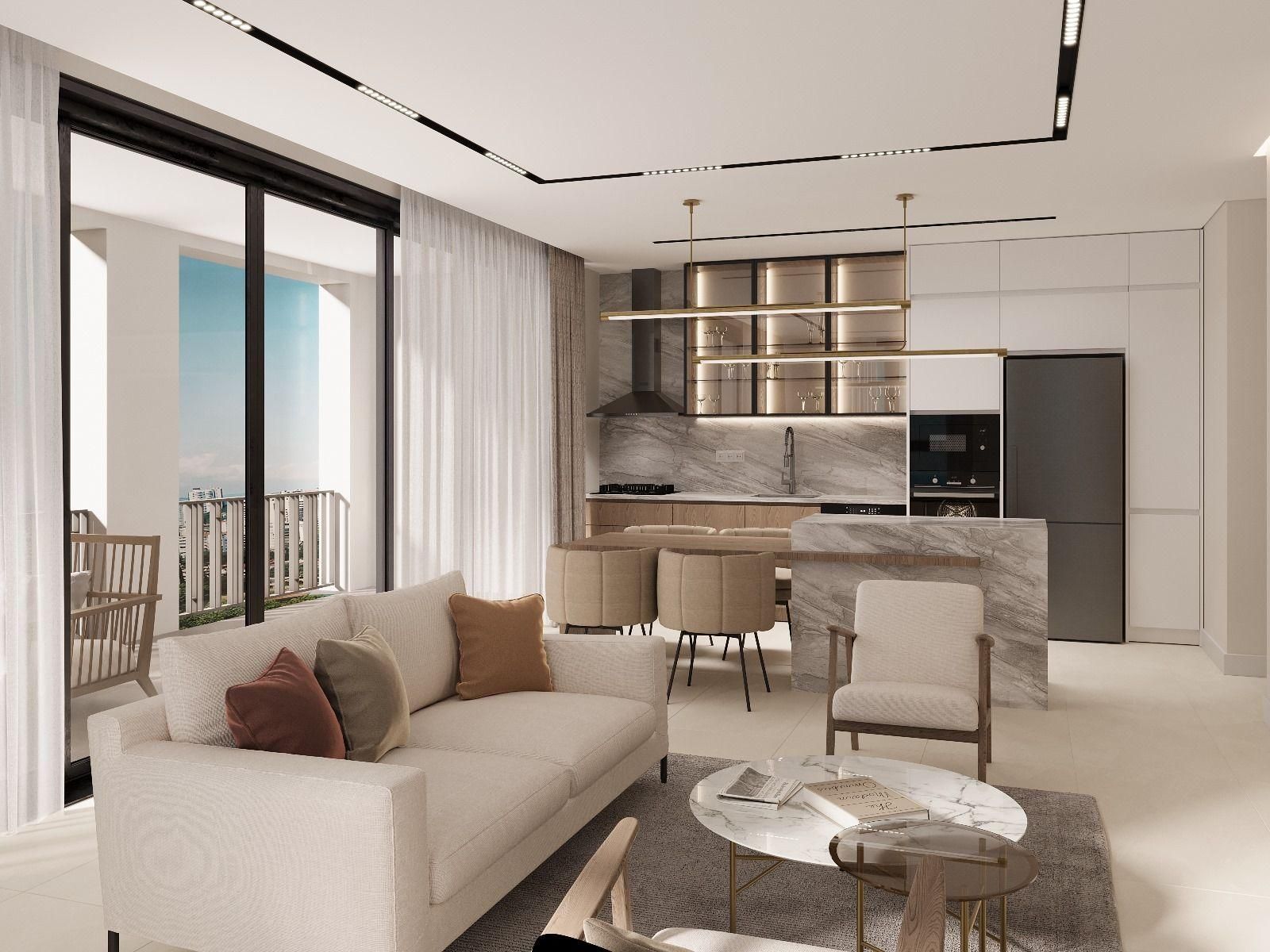 Stan uključuje kuhinju, blagovaonicu i dnevni boravak od 35,21 m², dvije udobne spavaće sobe (13,13 m² i 12,59 m²), modernu kupaonicu (4,27 m²), odvojeni WC (1,69 m²), praonicu/vešeraj (1,94 m²) te funkcionalan hodnik (6,31 m²) koji povezuje sve prostorije. Posebnu vrijednost daje prostrana lođa s koje se pruža očaravajući pogled na Trogirski zaljev – savršeno mjesto za jutarnju kavu ili večernje opuštanje uz zalazak sunca. Zgrada ima lift, a stanu pripada zajednički vrt.