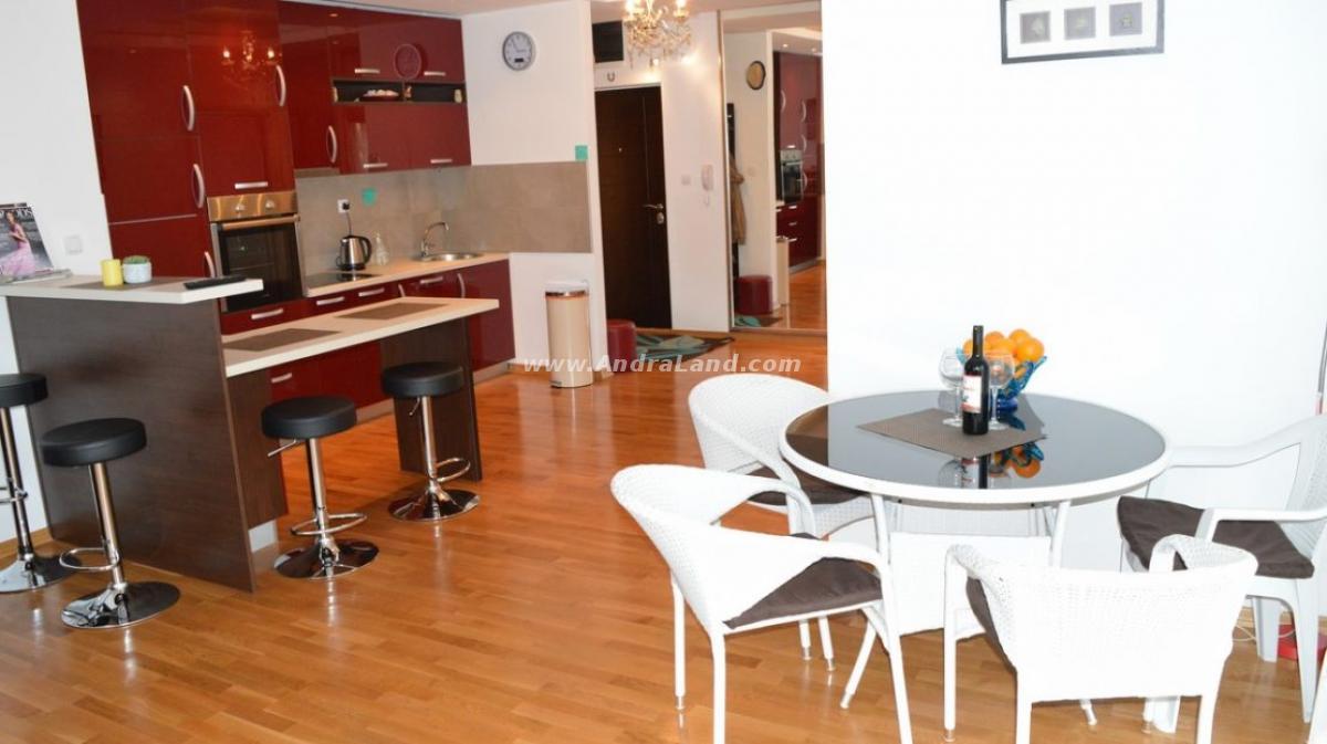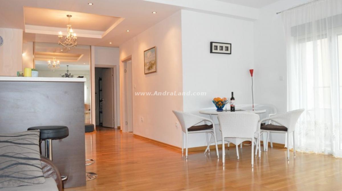Opis: Prodaje se dvosobni stan, pogled na more, do mora 300 metara. Nova kuća. 2. sprat. Potpuno namješten. Parket. Površina je 75m2. Dve spavaće sobe, veliki dnevni boravak sa kuhinjom i trpezarijom. Dve terase. Dokumenti su čisti. Bazen sa ležaljkama za 10 metara od apartmana.