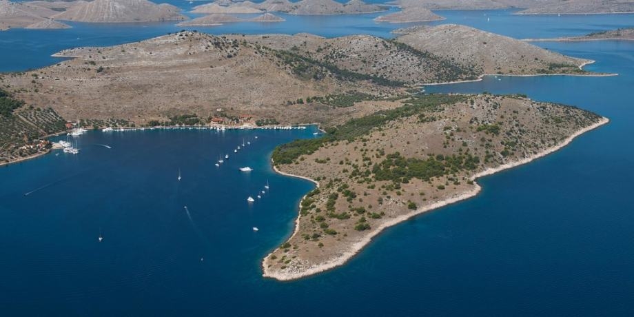 Opis (Engleski): For sale is an exceptional agricultural purpose land plot of over 300,000 m² located on the island of Žut, one of the largest and most beautiful islands in the Kornati archipelago. The property stretches as a belt from the northern to the southern coast of the island, offering direct access to the sea on both sides — 60 meters of coastline in Žut Bay, with a view of the ACI Marina, and 150 m of southern coastline facing the Kornati National Park and the Telašćica Nature Park.The island of Žut lies between Šibenik (12 NM) and Zadar (7 NM), in one of the most attractive parts of the Croatian Adriatic — the Kornati archipelago, famous for its untouched natural beauty. Nearby are the ACI Marina Žut and the renowned Festa Restaurant with glamping facilities. It offers 60m of northern waterfront and 150m to the south, ideal for pontoons and water sports access.According to the spatial plan: – Construction of several buildings up to 100 m² each (infrastructure hubs) is permitted....