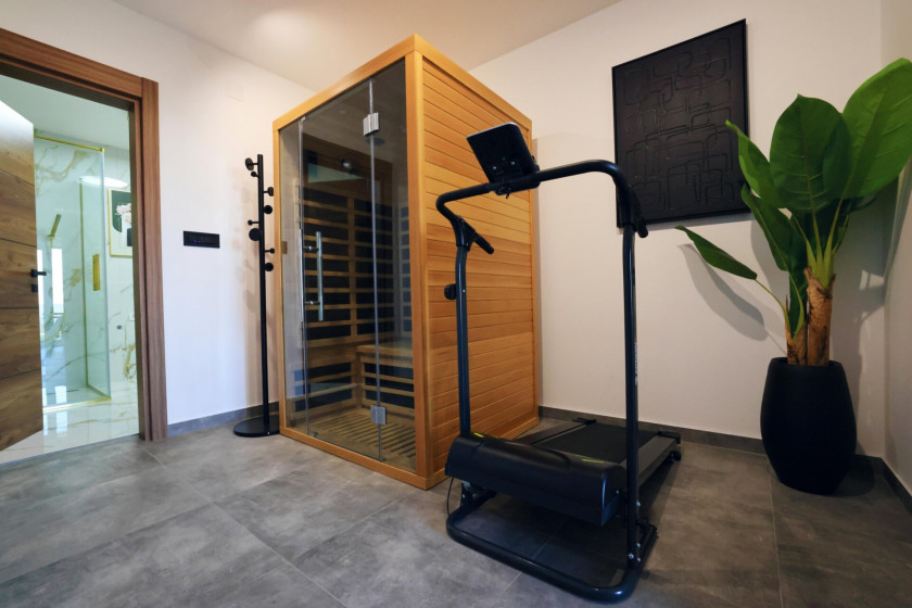 Vila poseduje sve sadržaje neophodne za udoban boravak: bazen, sauna, jacuzzi, klima uređaj, kamin, kuhinja sa kompletnim posuđem, veš mašina, čisti peškiri, fen za kosu, WiFi, televizor, prostrano dvorište, baštu i obezbeđen parking.