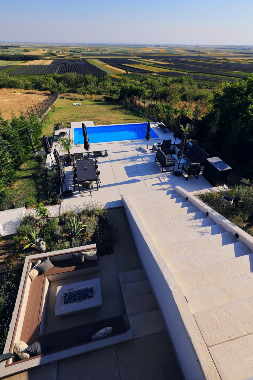 Okružena vinogradima i poznatim vinarijama – među kojima se izdvaja Atelje vina Šapat na svega 600 metara udaljenosti – ova vila pruža idealnu kombinaciju komfora, luksuza i mira. Namenjena je porodicama, parovima i prijateljima koji žele da pobegnu od svakodnevice i uživaju u privatnosti i prirodi bez kompromisa.