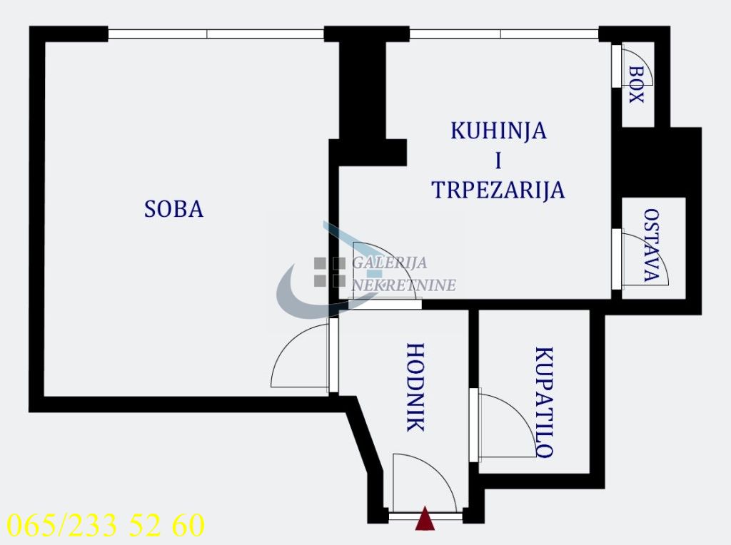 Od prostorija: hodnik, kuhinja sa trpezarijom, soba, kupatilo.