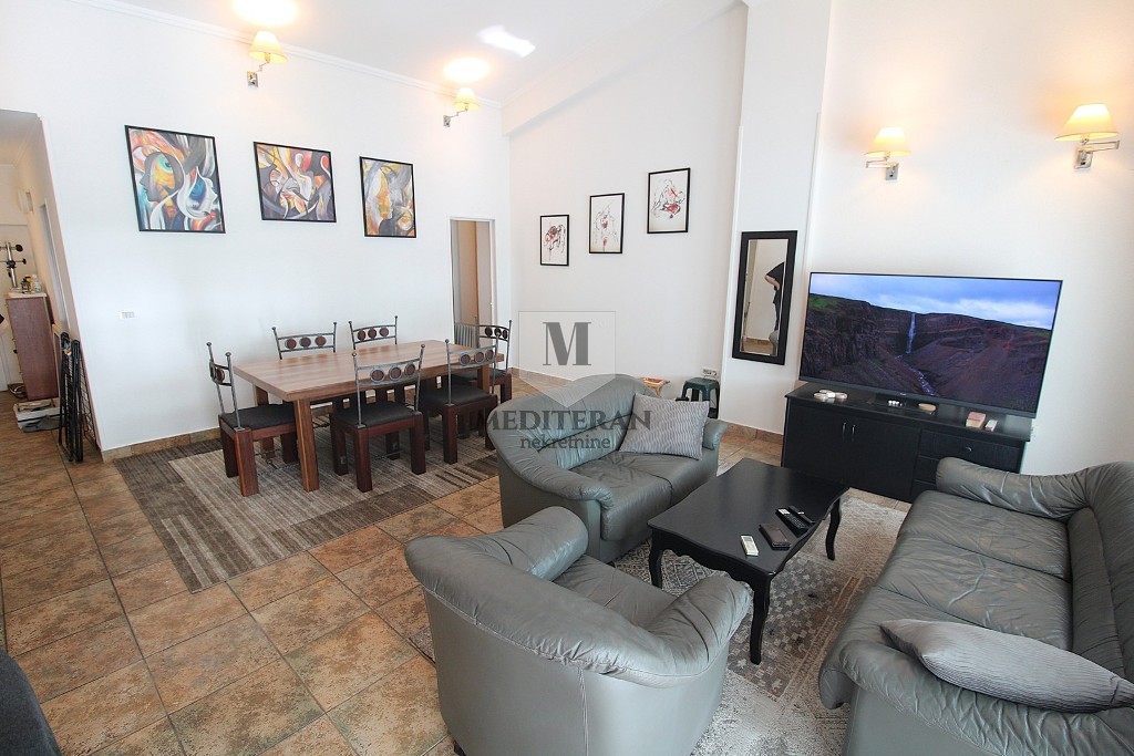 Сдаётся трёхкомнатная меблированная квартира площадью 85 м² в отличном месте в посёлке Топла 1. Планировка комнат: прихожая, гостиная, кухня, три спальни, две ванные комнаты, большая терраса, выходящая на юг, с видом на море. Квартира расположена в привлекательном месте на улице Негошева, рядом со всеми необходимыми для комфортной жизни объектами. В непосредственной близости находятся: школа, детский сад, рынок, кафе, рестораны, пекарня... Расстояние до моря и центра города составляет пять минут пешком. Квартира сдаётся в длительную аренду.