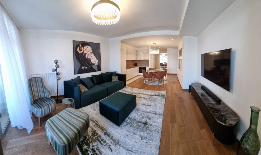 Opis: Trosoban luksuzno opremljen stan sa pogledom na reku u Beogradu na vodi.