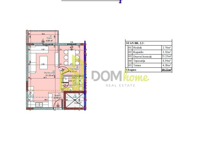✅ Struktura stana: Ulazni hodnik, dnevni boravak, kuhinja, trpezarija, spavaća soba, kupatilo i terasa.