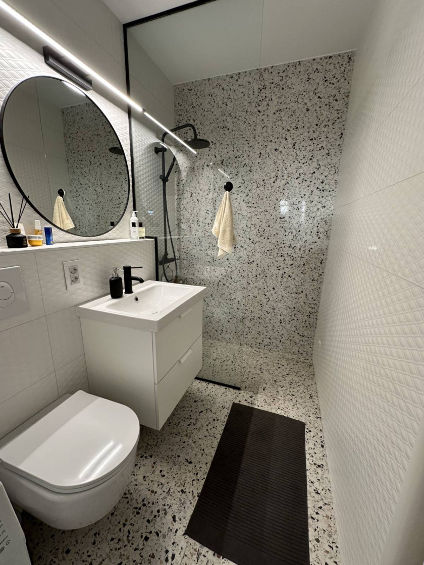 Stan ima 44m2 grejne površine, 20m2 terasa i 4m2 lođa, centralno grejanje, moderno je namešten i opremljen tehnikom Miele.