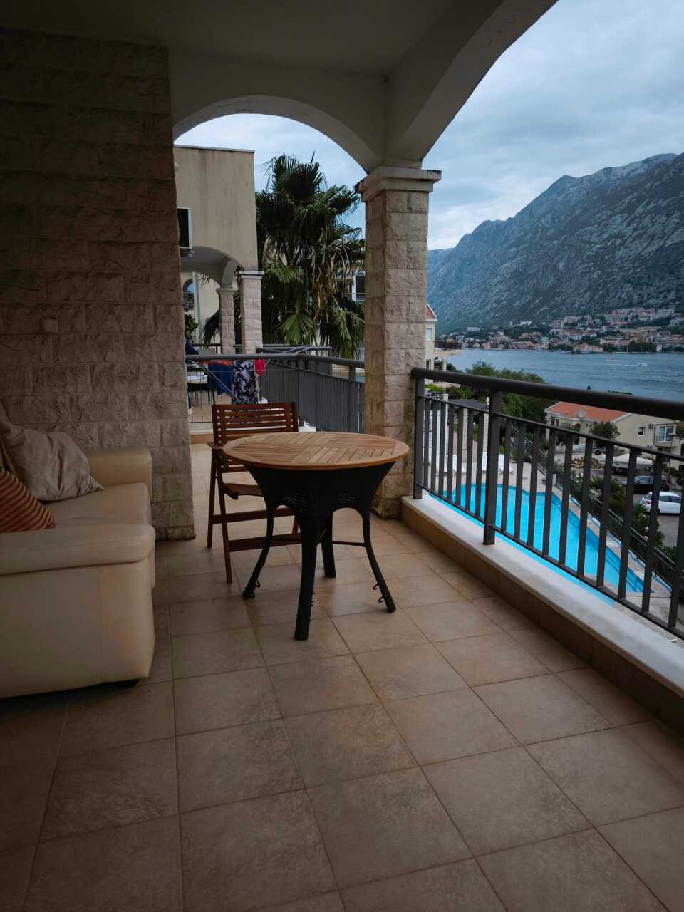 Opis: Prostran dvosoban stan s panoramskim pogledom na more u kompleksu s bazenom – Muo, Kotor