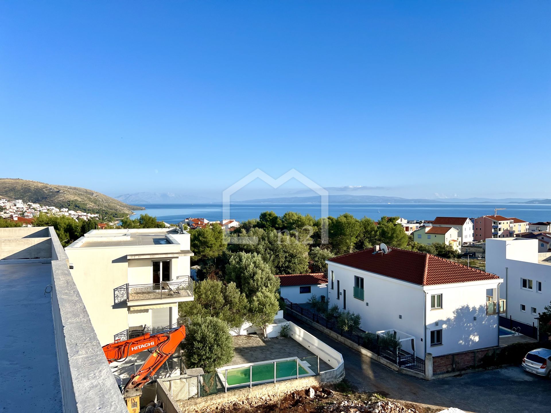Opis: Posredujemo u prodaji dvosobnog penthousa u novogradnji u manjoj stambenoj zgradi na otoku Čiovu, predio Okrug Gornji. Nalazi se na drugom katu novogradnje, površine 63m2. Sastoji se od dvije spavaće sobe, dnevnog boravka sa kuhinjom i blagovaonice, kupaone te lođe. Stanu pripada i krovna terasa sa koje se pruža lijepi pogled na mjesto i more.
