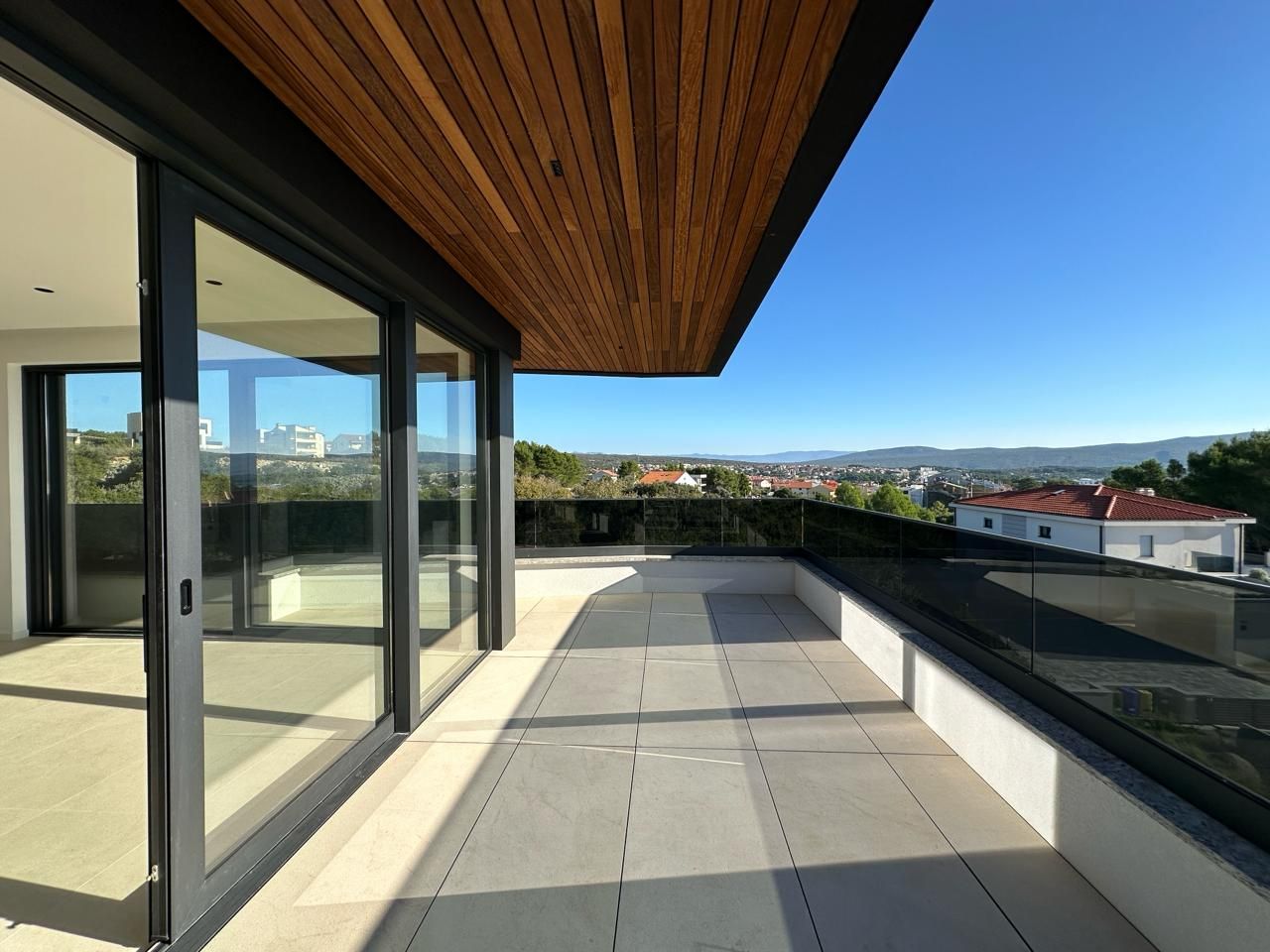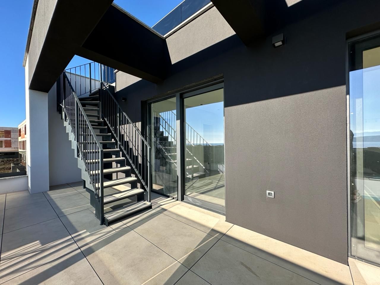 Opis (Engleski): Luxury Penthouse with 3 Bedrooms, 3 Bathrooms, and Roof Terrace with Sea Views, mere 500 Meters from the Sea in the Town of Krk!This stunning luxury penthouse, located in a newly built building, offers a spacious 254.70 m² of living space and is situated on the second floor. The apartment features three bedrooms, two of which include private en-suite bathrooms, while the third bedroom is designed with a walk-in wardrobe. In addition, the property includes technical rooms that serve as a boiler room and laundry area, plus an additional guest bathroom.The heart of the home is an exceptionally large, open-concept living area that seamlessly combines the kitchen, dining room, and living room. The space is flooded with natural light thanks to its south-facing orientation and large windows, and it opens up onto a terrace with panoramic views of the sparkling blue sea....