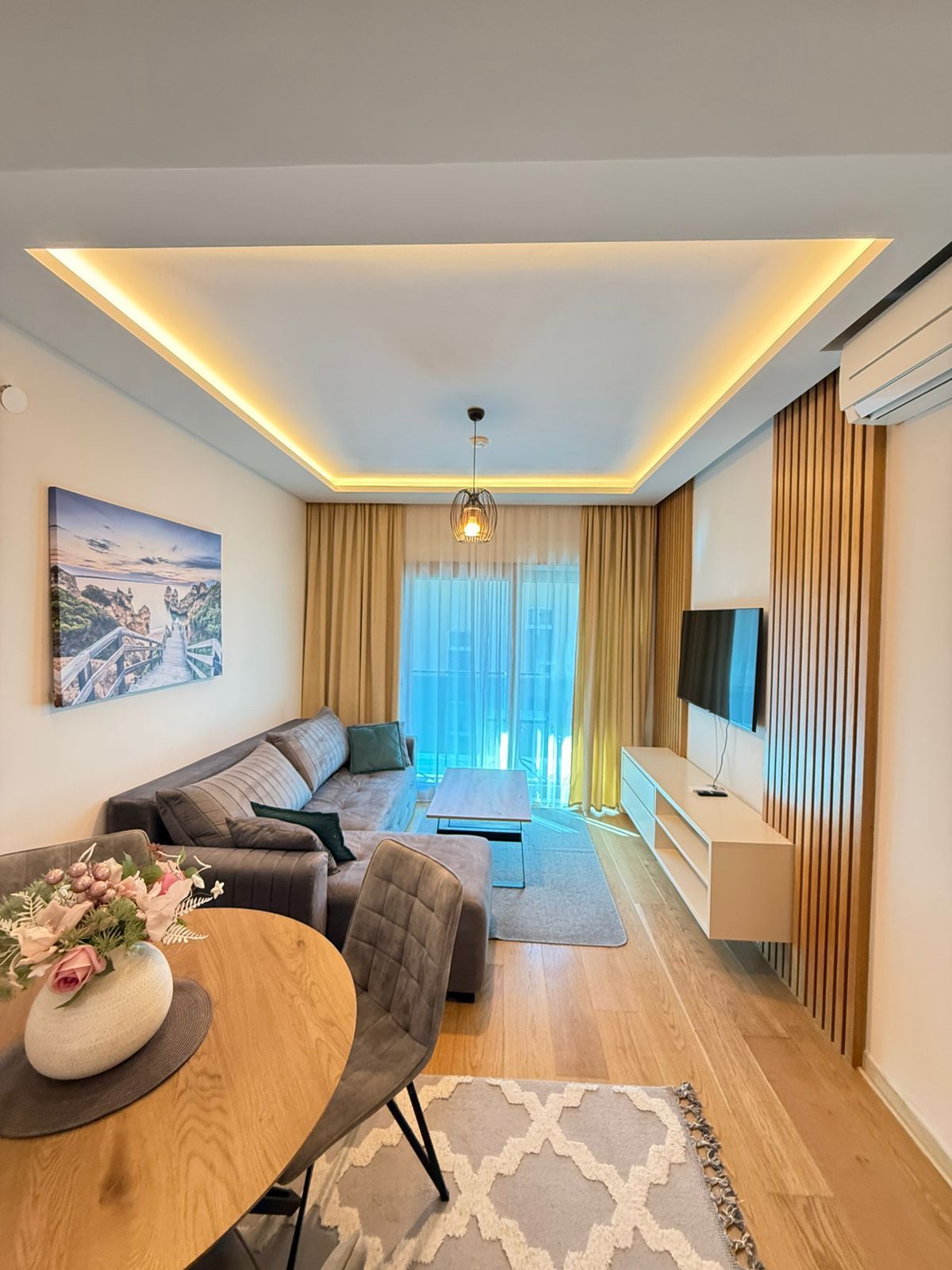 Izdaje se dvosoban luksuzno opremljen stan u Pržnu, na Budvanskoj rivijeri.