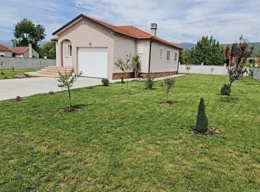 Opis: Izdaje se lijepa, opremljena kuća u Danilovgradu u Spužu, Grbe, na udaljenoski cc 10 km od Podgorice. Kuća je trosobna, sadrži prostrani dnevni boravak, kuhinju, trpezariju, kupatilo i toalet, tri spavaće sove. U okviru kuce je i garaža. Plac je uređen i kultivisan, 1000 m2 površine. Posjeduje sistem za navodnjavanje. Grijanje je solarnim panelima a uvedeno je i centralno grijanje na pelet. Kuća ima video nadzor, alarm.