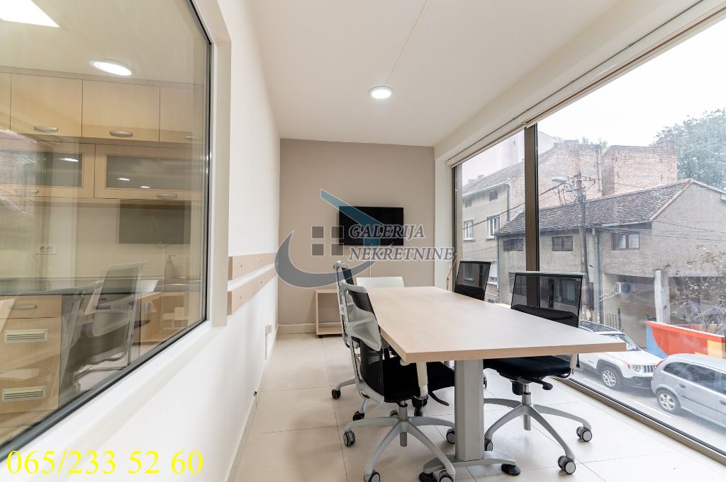 U prilici smo da Vam ponudimo u zakup, nov, reprezentativan i izuzetno moderan poslovni/kancelarijski prostor, funkcionalnog rasporeda, u ulici Svetozara Gligorića (deo bivše Dubljanske ulice), u srcu Čubure, nadomak Hrama Svetog Save i suda u Katanićevoj ulici. Brzo i lako je saobraćajno povezan sa svim delovima grada i sa auto putem. Smešten je na poslovnom nivou (visina prvog sprata) nove četvorospratne zgrade, sa liftom. Ovaj prostor, kao i cela zgrada i prostor oko zgrade su do najmanjih detalja osmišljeni i urađeni vrlo luksuzno i kvalitetno 2014 godine i u kontinuitetu perfektno održavani, pa je sve to još uvek kao novo.